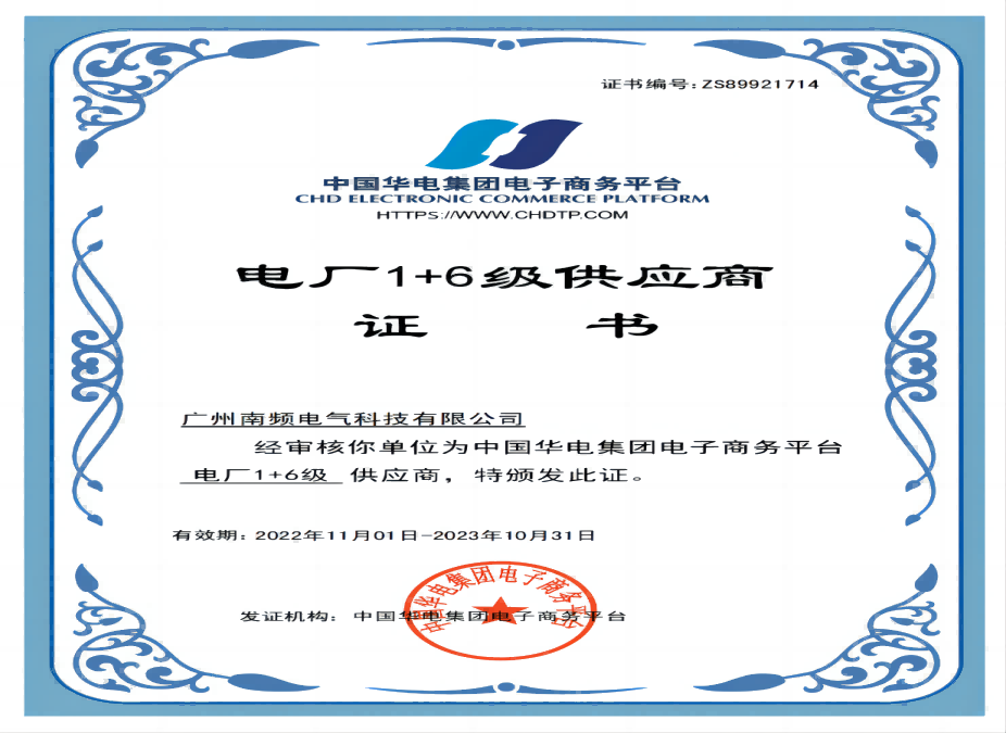 中國華電1+6級(jí)供應(yīng)商證書